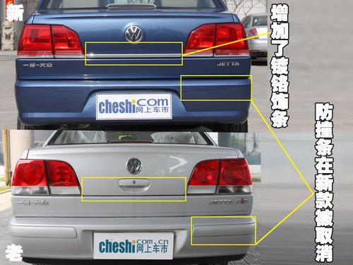 尾部整體造型也沒有什么變化,細節(jié)之處有一些不同。大燈造型變得更加尖銳,尾燈燈光造型也由圓形變?yōu)椤癓”型;大眾LOGO下方取消了后備箱拉手,并增加了一條鍍鉻飾條;還有保險杠的防撞條也取消了,和前保險杠保持了一直風格。