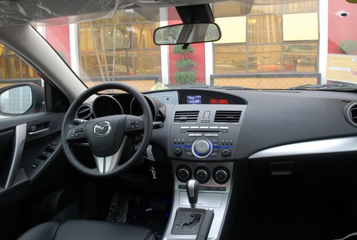 馬自達3的內(nèi)飾采用了全黑配色,運動取向立現(xiàn)。中控臺設計甚為特別,自上而下分布的功能區(qū)域其實處在不同的平面之上,也就是說,馬自達3的中控臺是立體的褶皺面。儀表臺上,是兩個碩大的的炮筒狀儀表,至于行車信息顯示則居于中空最上方一弧形內(nèi)。作為一輛進口車,馬自達3用他精致的內(nèi)飾做工告訴我們什么是原裝日本車的質感,只有英朗的內(nèi)飾工藝能與之一拼。