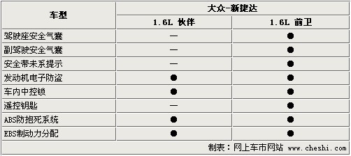 全新捷達(dá)雖然冠上全新二字,但消費(fèi)者仍然不會對捷達(dá)的配置有非常大的興趣。對于這樣一款進(jìn)行過幾次改型的老車型,配置方面不會有太大變化。在1.6L前衛(wèi)車型上,標(biāo)配了前駕駛員與副駕駛安全氣囊,,保證了前排乘員的安全。駕駛員一側(cè)的安全帶帶有未系提示,時刻提醒駕駛員保證自身安全。全系標(biāo)配的配置還有電子防盜系統(tǒng)、車內(nèi)中控鎖及ABS+EBD系統(tǒng)。1.6L伙伴并沒有裝備安全氣囊,配置較低。