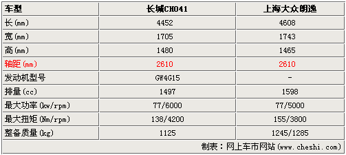 1、長(zhǎng)城CH041與朗逸軸距相同