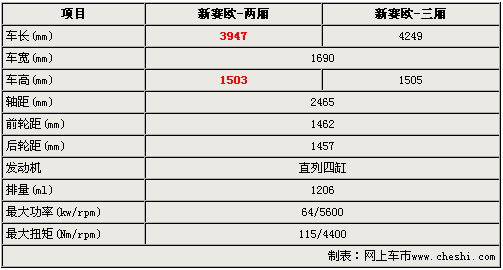 新賽歐兩廂版在保持車身寬度不變的基礎(chǔ)上,將車身長度和車身高度分別縮短和降低了302mm和2mm。新賽歐兩廂版雖然在車身尺寸方面略有變化,但整車軸距依然與三廂版車型保持一致,達2465mm。新賽歐兩廂版入門級車型搭載排量為1.2升的S-TEC系列發(fā)動機,最大功率和扭矩分別為64Kw和115Nm,與之相匹配的5速手動變速器和EMT半自動變速箱。