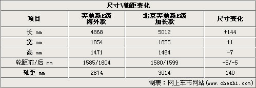 國產(chǎn)新一代E級(jí)加長(zhǎng)版車型相比目前國內(nèi)銷售的原裝進(jìn)口車款在長(zhǎng)度上也有明顯變化,整車長(zhǎng)度從4.868米增加到5.012米、車身寬度略增1mm高度減少了7mm前后輪距也分別減少了5mm。前后軸距加長(zhǎng)了140mm整。如果您對(duì)目前銷售的進(jìn)口原裝奔馳E級(jí)轎車軸距不太滿意,那么不妨期待一下北京奔馳國產(chǎn)化的新E級(jí)加長(zhǎng)版車型。