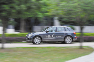 在科技日上,一款令人意想不到的氫燃料電池車——奧迪Q5 HFC(Hydrogen Fuel Cell)氫燃料電池車也出現(xiàn)在試乘車型隊伍中。我們試乘后的感受是,與內燃機Q5相比,這款車的動力毫不遜色,聲音非常安靜,而且這款車排出的只有水而沒有任何廢氣。