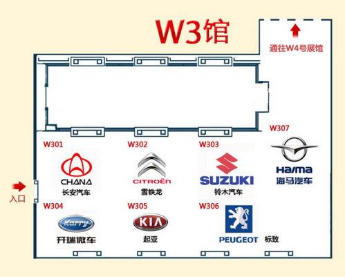 在本屆北京車展,W3館有東風(fēng)悅達(dá)起亞、鈴木、長安汽車、雪鐵龍、標(biāo)致、海馬汽車、開瑞等9個品牌參展,主要亮點車型包括東風(fēng)悅達(dá)起亞新遠(yuǎn)艦、鈴木Kizashi、雪鐵龍Survolt概念車、雪鐵龍DS3、標(biāo)致508概念車以及海馬騎士等。