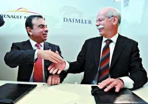 2010年4月7日,比利時布魯塞爾,當戴姆勒集團董事會主席迪特·蔡澈與雷諾-日產聯(lián)盟主席卡洛斯·戈恩同時在一份看起來非常簡樸的文件上簽字之后,世界汽車工業(yè)的格局再次發(fā)生了重大改變,戴姆勒-雷諾-日產新組成的聯(lián)盟,一躍成為排在豐田和大眾-鈴木聯(lián)盟之后的世界第三大汽車聯(lián)盟。