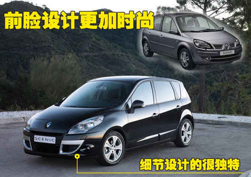 即將在本屆北京車展中發(fā)布的這款新車是第三代雷諾風(fēng)景,首次亮相是在09年的日內(nèi)瓦車展上。第三代風(fēng)景延續(xù)上一代做法,同時(shí)推出了風(fēng)景 (Scenic)以及大風(fēng)景(Grand Scenic)兩個(gè)版本。其中風(fēng)景由于車身尺寸限制,僅提供五座版本,而大風(fēng)景則包括五座及七座版本。兩者在前臉設(shè)計(jì)也稍有區(qū)別。另外新風(fēng)景的前臉細(xì)節(jié)方 面,有不少獨(dú)特的設(shè)計(jì),起到了點(diǎn)睛的作用。
