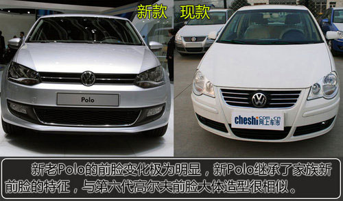 新老Polo的前臉變化極為明顯,新款Polo的前進(jìn)氣格柵改成了與高爾夫6很相似的窄條形狀,大燈的造型仿佛是第六代高爾夫縱向拉伸版,微微上翹的保險(xiǎn)杠配合上寬大的水箱冷卻進(jìn)氣格柵給人一種壞笑的感覺(jué),霧燈形狀也做了改進(jìn)。