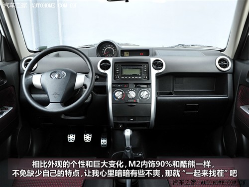 哈弗M2的內(nèi)飾與酷熊保持了高度的一致,看到這個(gè)造型難免讓人想到豐田XB,只不過長城模仿的是大部分人都不知道的車型。當(dāng)然,造型一致并不意味著沒有變化,比如M2在的金屬踏板是酷熊沒有的,它既增加了視覺效果又對(duì)防滑起到積極意義,車門的內(nèi)襯顏色也升級(jí)為新的黑紅搭配的網(wǎng)格材料。