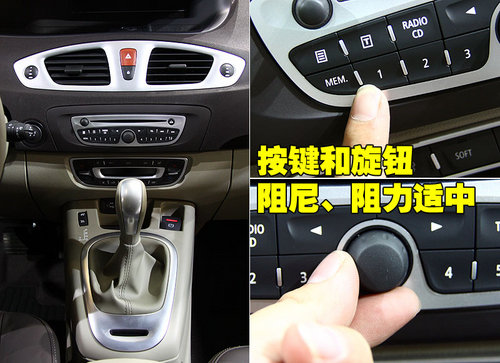 雷諾新風(fēng)景的中控臺(tái)面板屬于時(shí)尚、簡潔的類型。中控臺(tái)的各按鍵、旋鈕在使用中各項(xiàng)調(diào)節(jié)功均能準(zhǔn)確到位,音響控制面板按鍵大小適中,方便乘客操作。