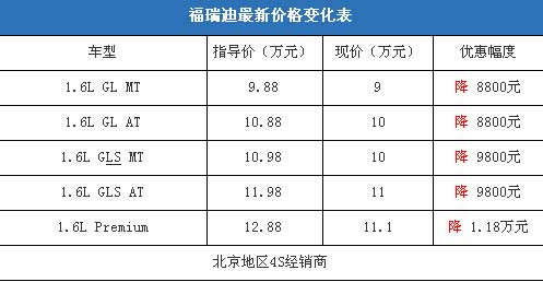 近日,編輯從北京地區(qū)東風(fēng)悅達(dá)起亞4S經(jīng)銷商處了解到,福瑞迪1.6L車型的現(xiàn)車充足,目前購車最高可以優(yōu)惠1.1萬元,性價(jià)比很不錯。據(jù)經(jīng)銷商透露,消費(fèi)者要想以這個(gè)價(jià)格提車,需要在店內(nèi)做購車一條龍服務(wù),車輛商業(yè)險(xiǎn)可以打9折。
