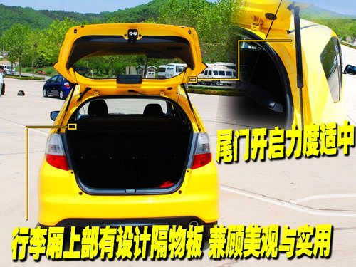 本田新飛度的尾門為電磁式開啟。尾門開啟時(shí)有液壓桿支撐,開啟十分輕松。開啟后發(fā)現(xiàn)后部空間較大,方便車主日常取放物品,380L的容積可滿足車主對行李廂空間的需求,該容量在同級別車型中稱得上是“海量”了。