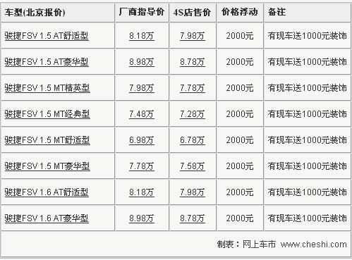 作為中華駿捷FRV的三廂車型駿捷FSV,自09年上市以來(lái)銷量一直不錯(cuò),實(shí)惠的價(jià)格和齊全的配置,讓其在家用消費(fèi)群體中備受關(guān)注。網(wǎng)上車市記者在華晨中華北京經(jīng)銷商處了解到,駿捷FSV全系車型均有一定幅度優(yōu)惠,具體信息參考下表: