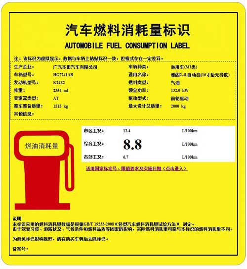上兩圖為本田雅閣的2.0L和2.4L兩款版本的車型工況油耗標(biāo)識(shí),而它8.5L/100km和8.8L/100km的油耗平均只看起來很好看,但是同時(shí)不得不承認(rèn)它的“體重”要比一般的歐美系轎車輕了一個(gè)成年人的重量。