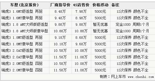 在剛剛結(jié)束的北京車展上,奇瑞瑞虎家族推出了兩款大師版車型,分別為1.8 AMT舒適型與1.8 AMT豪華型,售價(jià)是9.88萬(wàn)和10.88萬(wàn)。奇瑞瑞虎大師版的上市引起了媒體的廣泛關(guān)注,作為國(guó)內(nèi)首款配備五擋自動(dòng)機(jī)械變速箱的SUV,該車型的上市進(jìn)一步完善了瑞虎的產(chǎn)品體系,也為消費(fèi)者帶來(lái)更多選擇。網(wǎng)上車市從北京奇瑞經(jīng)銷商處了解到,目前購(gòu)買瑞虎3可獲得一定幅度優(yōu)惠。