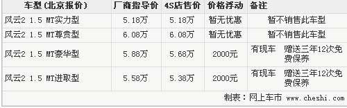 風(fēng)云2兩廂共有4款車型,指導(dǎo)價為5.18萬-6.08萬。根據(jù)奇瑞4S店銷售人員介紹,目前店內(nèi)銷售的車型只有進(jìn)取型和豪華型兩款,現(xiàn)在購車即可享受2000元現(xiàn)金優(yōu)惠,此外4S店還贈送三年12次免費(fèi)保養(yǎng)。