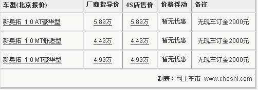 長(zhǎng)安鈴木新奧拓上市已有一段時(shí)間,但是目前市場(chǎng)上的熱度依然不減?磥黹L(zhǎng)安鈴木對(duì)奧拓車型的改進(jìn)十分成功,完全得到了消費(fèi)者認(rèn)可。在微型車市場(chǎng)上新奧拓完美的替代了老款?yuàn)W拓的地位,繼續(xù)暢銷。網(wǎng)上車市走訪了北京地區(qū)長(zhǎng)安鈴木4S店,對(duì)新奧拓的最新市場(chǎng)情況進(jìn)行了了解,具體信息請(qǐng)參考下表: