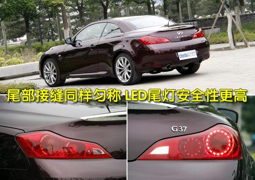 英菲尼迪G37敞篷版較四門版車型更為動(dòng)感時(shí)尚,整體設(shè)計(jì)偏向年輕化群體,外觀整體線條流暢,圓潤的設(shè)計(jì)絲毫不顯突兀。外觀做工沿襲了英菲尼迪造車一貫的細(xì)膩風(fēng)格,模具制造與噴漆工藝均屬上乘,前大燈與引擎蓋接縫十分勻稱,保險(xiǎn)杠、發(fā)動(dòng)機(jī)蓋及水箱框架等周圍的接縫同樣非常勻稱。