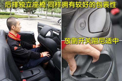為更好的提供車身線條與尺寸,大部分跑車都會(huì)一定量的忽略后排,G37敞篷版也是如此,但后排座椅的乘坐舒適還是不錯(cuò),座椅凹陷的設(shè)計(jì),同樣擁有了很好的側(cè)向支撐性。G37敞篷版的前排座椅前移放倒功能為半自動(dòng)式,拉手與按鍵開關(guān)阻尼適中,沒有松垮的感覺,操作上也比較簡(jiǎn)便。