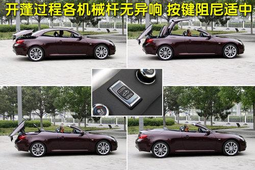 就官方數(shù)據(jù)所示,G37敞篷版開蓬僅需25秒,即可在轎跑車和敞篷車之間自在切換。開蓬按鍵周圍由金屬包裹,做工精細(xì),按鍵阻尼適中,開合中噪音極小,全過程無延遲現(xiàn)象。