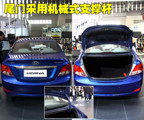 北京現(xiàn)代Verna的后行李廂開(kāi)啟比較便捷,而尾門外部開(kāi)啟可使用鑰匙實(shí)現(xiàn)操控,機(jī)械支撐桿設(shè)計(jì)開(kāi)啟使很輕松。