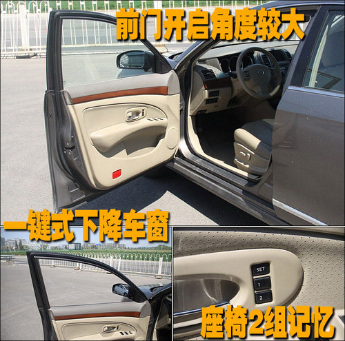 這款車的車窗采用了一觸式升降功能,駕駛席控制區(qū)可輕松控制其它車窗。2組記憶座椅的配備,可以在第一時間為駕駛員調(diào)節(jié)到最適合的位置。