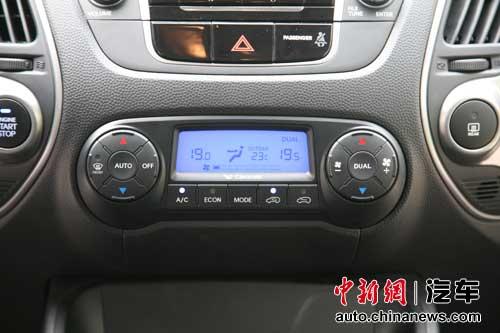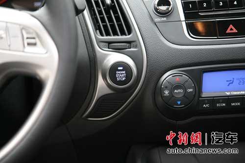 作為一輛20萬元出頭的車,該有的配置ix35差不多都有了——無鑰匙啟動、雙區(qū)自動空調(diào)、倒車影像、雙天窗、自動防眩目后視鏡、自動頭燈等等。無鑰匙啟動是ix35最大的亮點之一。除兩款2.0新銳版外,其他幾款ix35皆配有無鑰匙進入和啟動系統(tǒng),這在很大程度上是區(qū)分一輛車檔次的標志性配置。此外扶手箱里還備有鑰匙插孔,一旦遙控鑰匙電池耗盡導致無法通過無鑰匙啟動,只需將鑰匙插進插孔,就可以啟動汽車。我們在測試時做了個實驗,在汽車啟動后將鑰匙拿出車外。此時儀表上會顯示“Key out”,但是汽車不會自動熄火,也依舊可以駕駛,只是如果熄火后要再啟動就不可能了。
