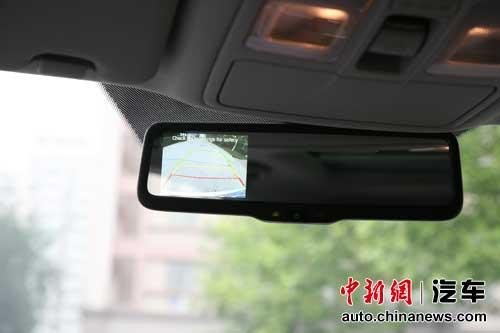 圖注:這款車型上的自動(dòng)防眩目后視鏡上集成了倒車影像功能,對(duì)于SUV這樣體型偏大的車型來說,這個(gè)功能無疑非常實(shí)用。在更高配置的車上,這一功能被集成到了中控上的汽車導(dǎo)航影音系統(tǒng)之中。