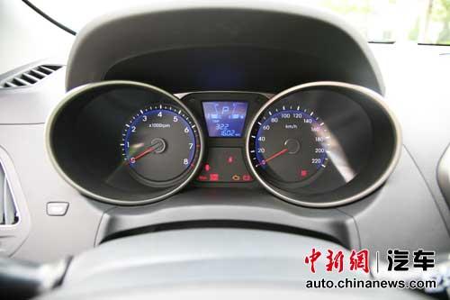圖注:藍(lán)色背光的炮筒型儀表。和老款途勝一樣,ix35的行車電腦依舊不具備平均和瞬時(shí)油耗顯示功能。