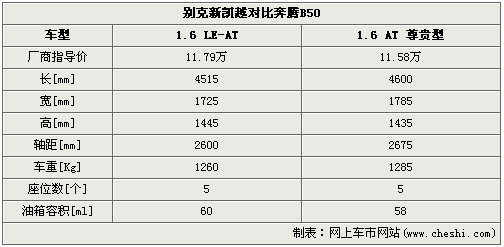 從車身尺寸來看,新凱越的三圍是:4515mm*1725mm*1445mm,B50的長寬高是:4600mm*1785mm*1435mm。在長、寬兩個項目上,身材更加魁梧的B50優(yōu)勢相對明顯,為車內(nèi)腿部空間和橫向舒展性的優(yōu)良感受奠定基礎(chǔ);車身高度上新凱越略占優(yōu)勢,乘客頭部的空間相對由優(yōu)勢。