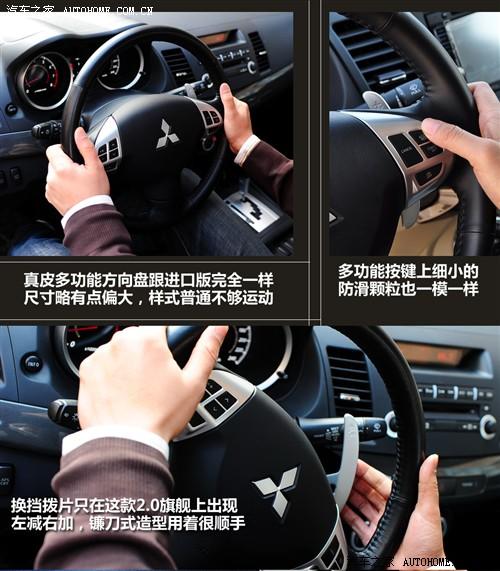 除了這兩樣標(biāo)準(zhǔn)配置以外,翼神還有兩個亮點(diǎn),第一個即高配車型上的儀表盤,中央顯示屏色彩相當(dāng)炫目,非常漂亮!不光是視覺效果好,可以顯示的行車信息也是相當(dāng)?shù)呢S富,可謂應(yīng)有盡有;第二個則是換擋撥片,在2.0升旗艦版車型上面提供了與進(jìn)口Lancer EX相同的撥片,而且在實(shí)際使用中的反應(yīng)很靈敏迅速。不過要想真正追求駕駛樂趣,顯然手動擋車型才能滿足。換擋行程很短,有一定的吸入感,既緊湊又不會生硬,這種感覺對于年輕人來說肯定夠誘惑,雖然說這款來自愛信的變速箱并不像CVT一樣是進(jìn)口的。