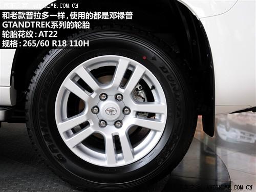 在輪胎和備胎方面,普拉多仍然堅持使用鄧祿普的GRANDTREK系列輪胎,只不過花紋從老款的AT20升級到AT22。另外,新款普拉多有備胎外掛和底盤內(nèi)藏兩種版本,外掛顯得很彪悍,但長時間使用的話會引起尾門的變形,從而產(chǎn)生噪音和密封性的問題,這點老款普拉多車主經(jīng)常抱怨,當(dāng)然好處是車輛有足夠的位置設(shè)計副油箱,從而增加續(xù)航里程。進(jìn)口和國產(chǎn)的新款普拉多選擇了將備胎隱藏在底盤下面的版本。