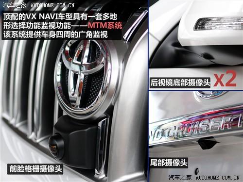 配置上的區(qū)別首先在前臉格柵就能發(fā)現(xiàn),因為在車標(biāo)下面隱藏了一個攝像頭,而這在低配車型上是沒有的,與之搭配的是正副駕駛后視鏡下面和車輛尾部也各有一個攝像頭,四個攝像頭組成了VX NAVI車型的“MTM多地形選擇功能監(jiān)視系統(tǒng)”。VX車型則沒有正駕駛后視鏡上的攝像頭。