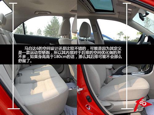 有幾個(gè)女人買車會(huì)考慮這車車內(nèi)是否寬敞?不過至少很多女性在購車的時(shí)候都會(huì)考慮其車體尺寸大小,可能是因?yàn)楦杏X車體大了,那么自己心里的安全感就會(huì)更充足,雖然這么說有違實(shí)際情況,但是至少馬自達(dá)6的尺寸要比緊湊型轎車大不少……