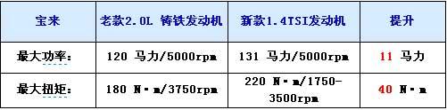 寶來2011款車型終于使用了大眾1.4T+DSG的動力組合,1.4TSI發(fā)動機最大功率131馬力,并可以在1750-3500轉(zhuǎn)的區(qū)間輸出220牛米的扭矩。相比那款鑄鐵的2.0L發(fā)動機,在最大功率上提高了11馬力,最大扭矩更是增加了40牛米之多。