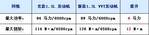 同悅全新的發(fā)動機除了增加VVT技術外,在排量上也比老款發(fā)動機有了一定的提升,其氣缸容積達到1332cc,超過了老款車型1299cc。新款發(fā)動機的最大功率達到99馬力,最大扭矩為126牛米/4500rpm。最大功率比老款大了5馬力,最大扭矩更是增加了12牛米。