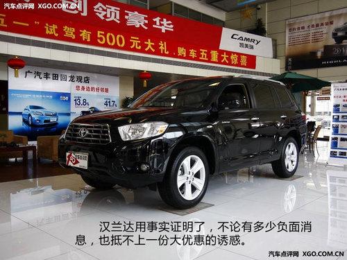 召回門之后,豐田全系產(chǎn)品都試圖用降價(jià)來挽回頹勢。您還別說,“優(yōu)惠甩賣”這招對中國人還真管用——甭管之前有多少負(fù)面,漢蘭達(dá)依然穩(wěn)居銷量榜第四。