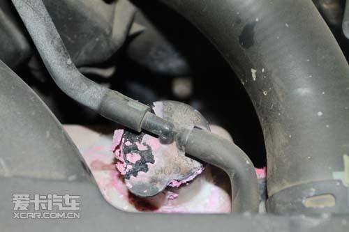 打開前機器蓋后,由于之前沒有檢查好冷卻液位置,導致冷卻液過低水溫升高,剩余冷卻液已經(jīng)噴出,如果在繼續(xù)行駛下去,沒有了冷卻液的發(fā)動機后果將會很嚴重,希望大家及時查看冷卻液是否過低,及時補充。