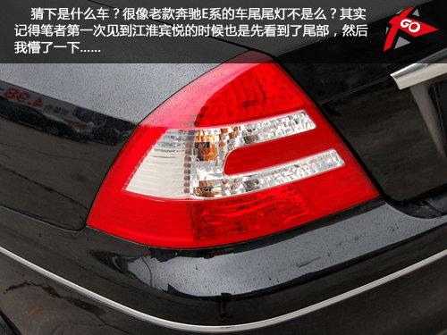 車尾?自己看看圖吧,其實編輯我感覺賓悅的尾燈組看起來更像老蒙迪歐的尾燈組,但是賓悅的后備箱罩厄線條卻更像奔馳老E級,很佩服江淮的設計師,能把兩款風馬牛不相及的車的特點很自然的融合在一起。
