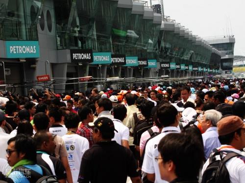 維修通道開放時(shí)大量觀眾涌入,可見SUPER GT的火爆場(chǎng)面↑