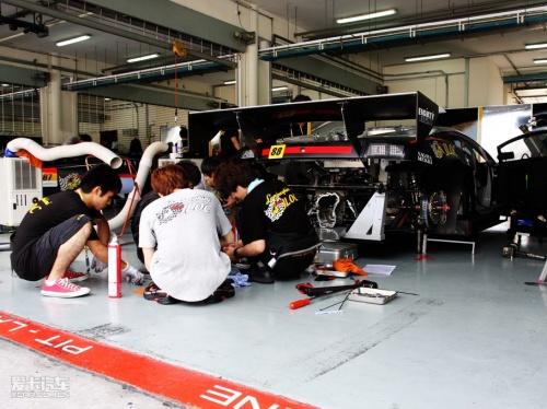 其實(shí)SUPER GT在比賽之前,大會(huì)是可以將維修通道開放30分鐘的,這時(shí)會(huì)有大量觀眾涌入。而每個(gè)車隊(duì)都將在門前拉起警戒線,禁止所有觀眾進(jìn)入,但這些車隊(duì)都會(huì)在適當(dāng)?shù)臅r(shí)候發(fā)放些紀(jì)念品或是請(qǐng)出各自的車模與觀眾進(jìn)行互動(dòng)。