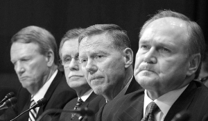 在巨大的生存壓力下,上周美國三大汽車巨頭通用汽車、福特汽車、克萊斯勒汽車的首席執(zhí)行官驅(qū)車845公里前往首都華盛頓,以求國會給予共計(jì)340億美元的貸款。經(jīng)歷了兩天折磨人的拷問后,三大汽車巨頭終于獲悉:有望得到150億美元至170億美元的貸款,今日國會將對此進(jìn)行投票表決。