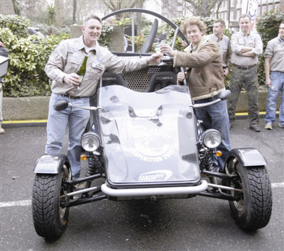 風(fēng)扇汽車(chē)既可以在崎嶇不平的沙地飛馳,又能像飛機(jī)一樣在空中飛行。在降落傘和一個(gè)巨型風(fēng)扇發(fā)動(dòng)機(jī)的幫助下,探險(xiǎn)家們計(jì)劃先在安道爾附近的比利牛斯山脈上空飛行,穿越14公里長(zhǎng)的直布羅陀海峽,接下來(lái),將飛越摩洛哥阿特拉斯山脈和撒哈拉沙漠,哪里沒(méi)有了公路,他就從哪里發(fā)動(dòng)風(fēng)扇發(fā)動(dòng)機(jī)駕車(chē)升空。