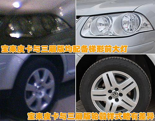 寶來皮卡與寶來經(jīng)典版車型同樣配備了梯形一體式前大燈,但在輪轂樣式方面兩款車略有不同。寶來皮卡沒有配備寶來經(jīng)典版車型的5輻中控鋁合金輪轂,而是配備了7輻式新款合金輪轂。