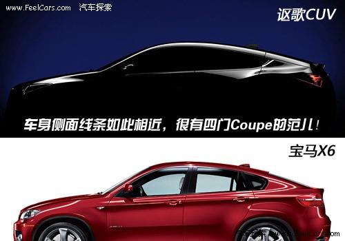 ZDX借鑒了寶馬X6的造型理念,同樣結(jié)合跑車的設(shè)計(jì)元素。整車更加突出運(yùn)動(dòng)氣質(zhì)和肌肉線條,后車門采用隱藏式設(shè)計(jì),更加詮釋出跑車的風(fēng)范。并且謳歌聲稱將在ZDX上應(yīng)用更先進(jìn)的技術(shù)以及安全性。