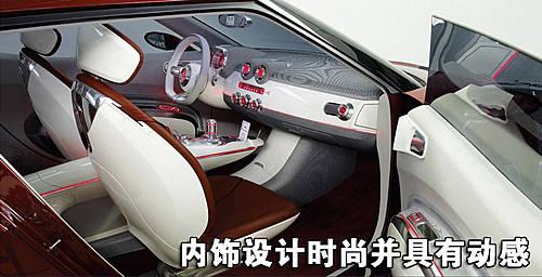 現(xiàn)代Veloster coupe概念車最大的特點(diǎn)便是采用了大面積玻璃車頂,內(nèi)廂為明亮的紅色配白色,再用高亮度金屬點(diǎn)綴,具有韓國式的現(xiàn)代感。中控臺(tái)上的音響系統(tǒng)可以連接蘋果iPod,短小的變速擋桿旁邊是發(fā)動(dòng)機(jī)啟動(dòng)按鈕。