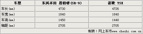 東風本田思鉑睿SR-9的原形車就是本田高端品牌謳歌TSX,因此這兩款車型在車身尺寸上沒有太大的出處,這一點從上表得數(shù)據(jù)我們就可以看出。東風本田思鉑睿和謳歌TSX在軸距方面完全相同,都是2705mm。因此兩款車型在內(nèi)部尺寸上不會有太大的差距。思鉑睿和謳歌TSX這兩款車型不僅車身尺寸大致相同,就連設計風格也同出一轍。