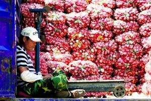 7月20日,北京新發(fā)地市場(chǎng),大蒜商戶在等候買家。 卓恩森 攝