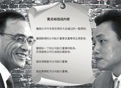 雖然黃光裕的經(jīng)濟犯罪已經(jīng)一審宣判,但黃光裕對上市公司的業(yè)績并不滿意,因此他要求舉行臨時董事會,并提出動議:包括撤銷公司今年股東周年大會通過的一般授權(quán);撤銷陳曉公司執(zhí)行董事及董事局主席職務(wù);撤銷孫一丁公司執(zhí)行董事的職務(wù),但保留其為公司行政副總裁職務(wù);提名鄒曉春、黃燕虹為公司執(zhí)行董事。