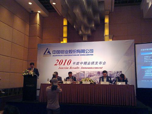 8月24日中國鋁業(yè)2010中報業(yè)績發(fā)布現(xiàn)場。新民網(wǎng)記者卜春艷 現(xiàn)場回傳