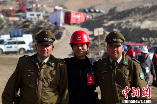 中新網(wǎng)長沙10月10日電(周娜 肖前輝)當(dāng)?shù)貢r(shí)間10月9日,智利圣何塞銅礦救援隧道打通,33名受困礦工有望在3-8天后獲救,結(jié)束兩個(gè)多月的地下生活。在救援現(xiàn)場隨時(shí)待命的,有一個(gè)來自中國的龐然大物,還有唯一的一張亞洲臉孔。